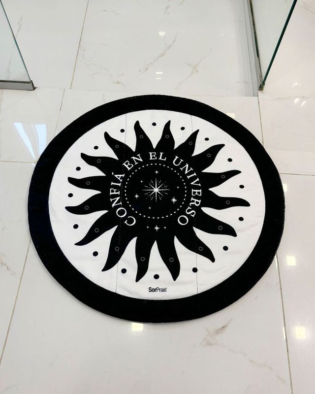 Un diseño que te recuerda que nada es casualidad. Esta alfombra combina estilo y energía, perfecta para acompañar tus rutinas con un mensaje de fe y conexión.